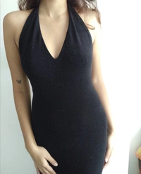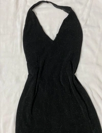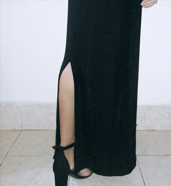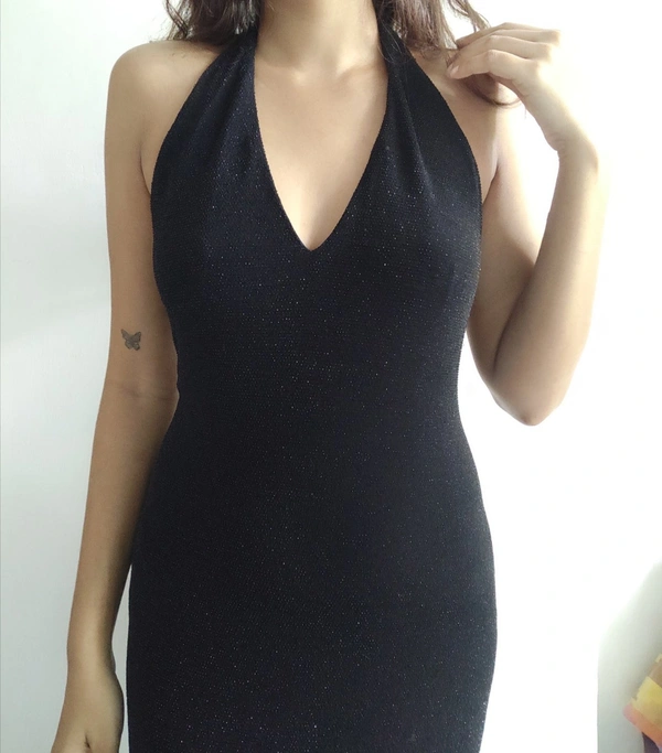 Never worn. Shimmery details. Stretchable Material. Model Height-5'3. Length - 52in, Bust - 13. 5in, Waist - 13.5in, Hips - 17.8in, Back - 18.5in from the nape of the neck.